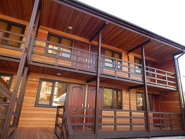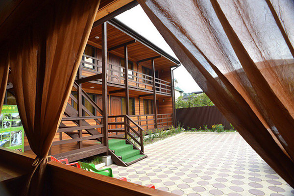 Жилой фонд из 10 номеров построен из натуральной лиственницы, с экологически чистой отделкой. Каждый номер отеля снабжен собственным балконом с видом на горы и отдельным санузлом с душем. В каждом присутствует необходимый набор бытовой техники: сплит-система, холодильник и электрический чайник и телевизор, а также работает Wi-Fi.